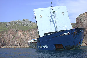 and machinery was quickly mobilised to clean up. It looks quite possible that the ship is starting to break apart and releasing significant amounts of cargo. |