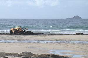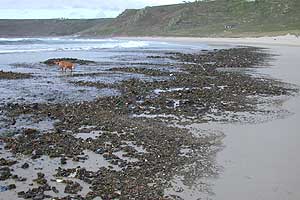 on Sennen Beach - floating `rafts` of plastic came ashore late afternoon