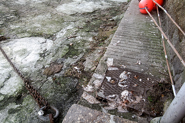 Raw sewage has been flowing down over the harbour slipway and fish-landing area.